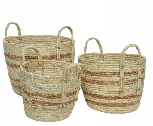 AAA Természetes kosár boho fogantyúkkal, csíkokkal díszítveALLEGRO