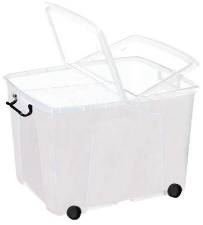 Robusztus műanyag tárolódoboz 4 oldalán megerősített, tömör falakkal. A doboz kerekekkel van felszerelve a könnyű mozgatás érdekében. A kúpos forma tökéletes egymásra rakást és összecsukást biztosít. Könnyű hozzáférés oldalról a dupla zsanéros fedélnek köszönhetően. Hatékony záródás a 2 robusztus, rápattintható fogantyúnak köszönhetően. Ideális dobozok dokumentumok archiválásához, tárolásához és helytakarékossághoz.