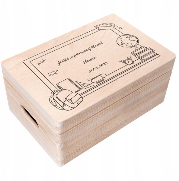 Creative Deco Ajándékdoboz az első iskolai napra, emlékeknek, gravírozott, 30x20 cm (JANCDSD130CUSTOMSCHOOLDAYBASICFBM)ALLEGRO