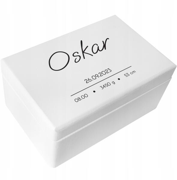 Creative Deco Ajándékdoboz gyermeknek, emlék a születésre, keresztelőre, születésnapra, 30x20 cm (JANCDSD130BCUSTOMDOTSIMPLEFBM-W)ALLEGRO