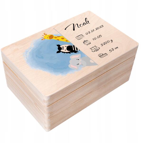 Creative Deco Doboz a gyermek születésére, fa anyakönyvi kivonat gravírozással, ajándék, 30x20x14 (JANCDSD130BCUSTOMANIMALBMEMBOXFBM)ALLEGRO