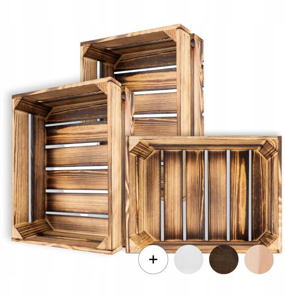 Creative Deco Égetett fa láda deszkákból, nagy méretű doboz, tárolóláda 40x30x15cm x3 darab (X00200EARP)ALLEGRO