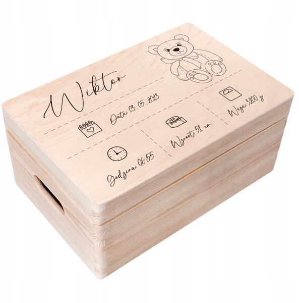 Creative Deco Emlékdoboz gyermeknek ajándék születésre keresztelőre születésnapra 30x20 (JANCDSD130CUSTOMBEARLINEFBM)ALLEGRO
