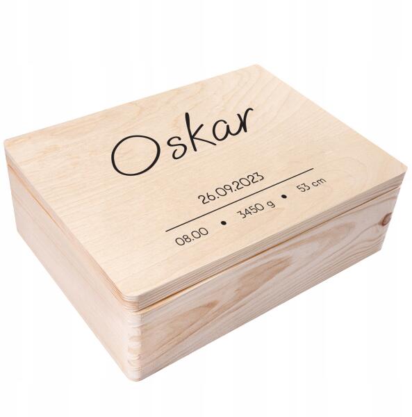 Creative Deco Emlékdoboz születésre, ajándék keresztelőre, anyakönyvi kivonat Uv nyomtatással, 40x30x14 cm (JANCDSD140BCUSTOMDOTSIMPLEFBM)ALLEGRO