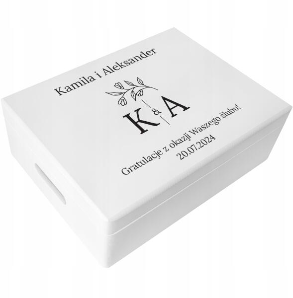 Creative Deco Esküvői ajándékdoboz gravírozással Esküvői ajándék monogrammal 40x30x14 (JANCDSD140CUSTOMWEDLETTERSFBM-W)ALLEGRO