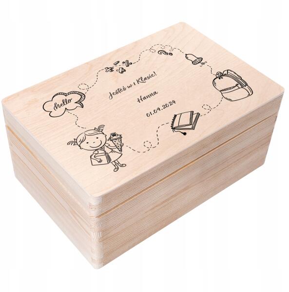 Creative Deco Fa doboz iskolai emlékeknek, gyermek névvel, ajándék, 30x20 (JANCDSD130BCUSTOMSCHOOLGIRLBASICFBM)ALLEGRO