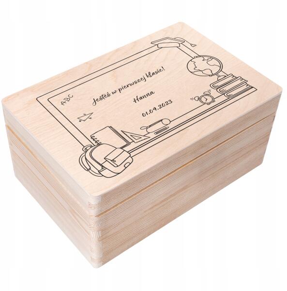 Creative Deco Fából készült ajándékdoboz iskolai emlékeknek, gravírozott, 30x20 cm (JANCDSD130BCUSTOMSCHOOLDAYBASICFBM)ALLEGRO