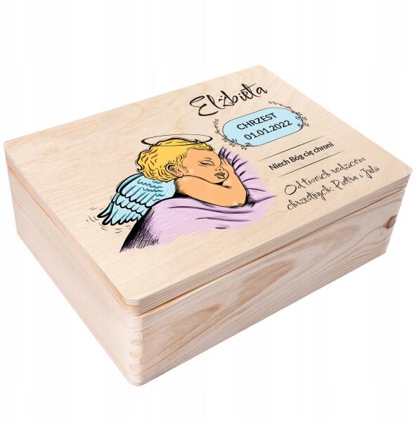 Creative Deco Gravírozott ajándékdoboz keresztelőre, emlék a szent keresztelőről, 40x30 (JANCDSD140BCUSTOMBAPTISMANGELFBM)ALLEGRO