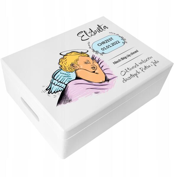 Creative Deco Gravírozott ajándékdoboz keresztelőre, emlék a szent keresztelőről, 40x30 (JANCDSD140CUSTOMBAPTISMANGELFBM-W)ALLEGRO