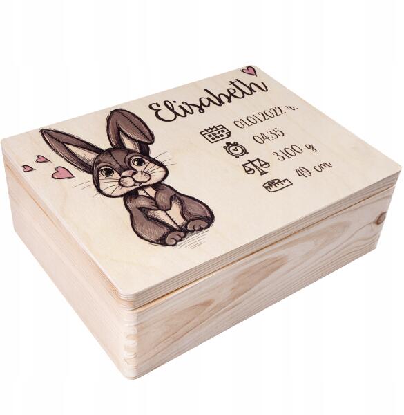 Creative Deco Gravírozott fa doboz gyermeknek, ajándék születésre, 40x30x14 cm (JANCDSD140BCUSTOMBUNNYFBM)ALLEGRO