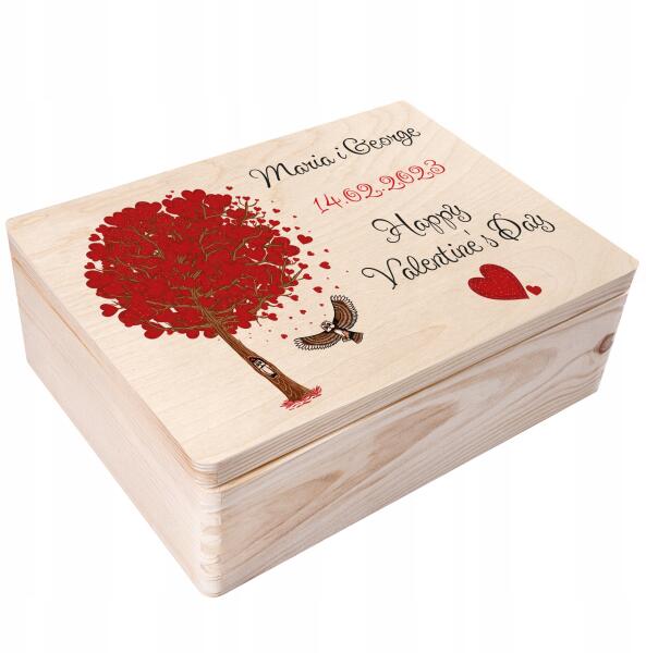 Creative Deco Valentin-napi doboz gravírozással, ajándék, kívánságok a szeretett személynek, 40x30 (JANCDSD140BCUSTOMLOVETREEBOXFBM)ALLEGRO