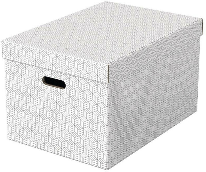 Esselte Home stílusos és modern karton tárolódobozok levehető tetővel azonnali otthoni tároláshoz. Három azonos méretű doboz, amelyeket önállóan vagy polcokra helyezve használhat személyes dokumentumok, könyvek, játékok rendezett tárolásához. A kivágott fogantyúk nak köszönhetően könnyen áthelyezhető. Erős, 100% -ban újrahasznosított és 100% -ban újrahasznosítható , FSC minősített hullámkartonból. Szárazon törölhető felület, geometrikus mintázat tal a stílusos tárolás érdekében. Gyorsan és egyszerűen összeállítható Duplafalú kialakítás biztosítja a dobozok stabilitását és gondoskodik a tartalom védelméről, a levehető tető pedig elrejti a doboz tartalát és védi a portól. A semleges színek nek és visszafogott dizájn nak köszönhetően tökéletesen illik bármilyen enteriőrbe. Méretek: 355 x 305 x 510 mm . Szín: fehér , szürke . Anyag: PP laminált, erős karton . Súly: 1100 g .