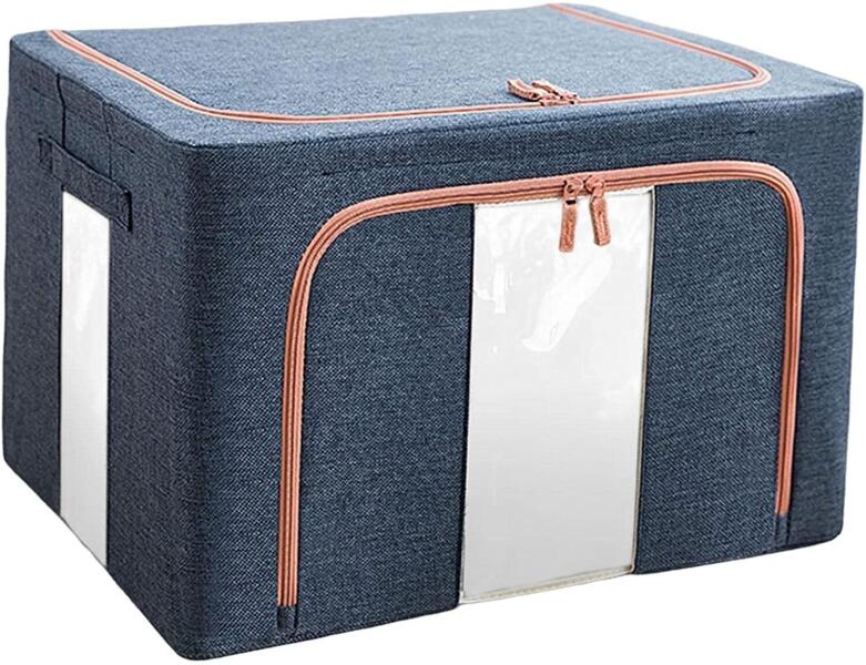 Flippy Összehajtható tárolódoboz, Flippy, cipzárral, 100 L, Textil, 60x42x40 cm, sötétkék, két ablakkal (125645)