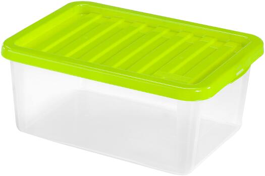 Quasar tároló - tetővel - 13 l - mérete: 38x25,5x16cm. Kék, zöld vagy átlátszó tetővel.