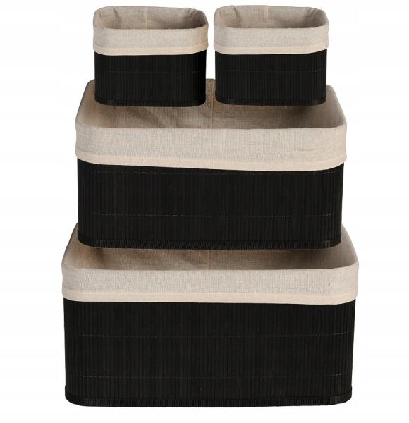 Home Styling Collection Tároló kosarak 4 darabos készlet bambusz textil fekete (hx9100610)