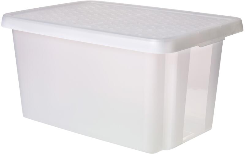 Curver Essentials Tároló Doboz Fedővel, 45L, Áttetsző Praktikus doboz, egyszerű vonalakkal. Ideális fürdőszobában, öltözőben és hálószobában való használatra.