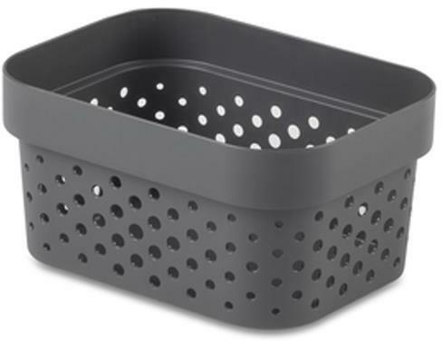 apró lyukakkal van perforálva. Ezért ideális minden olyan tárgy számára, amelynek a tárolás során légáramlásra van szüksége. A rövidebb falakon két fogantyú található. Használja őket a doboz hordozásához. Ezenkívül kiegészíti a konyha, a nappali, a hálószoba és a fürdőszoba berendezését.