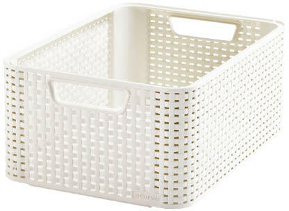 Méret: 436 x 326 x 230 mm. A stílusos, legalább 70%-ban újrahasznosított műanyagból készült rattan hatású kosár tökéletes alternatívája a valódi, fonott rattan kosaraknak. A modern design illeszkedik mind a hálószobába, mind pedig a fürdőszobába és a nappaliba is. Az anyag, amelyből a kosár készült biztosítja, hogy a benne tárolt elemek nem sérülnek, szennyeződnek.