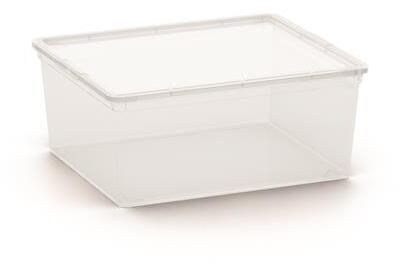 Átlátszó műanyag KIS C Box M tárolódoboz lehetővé teszi, hogy egyszerűen tárolja a gyerekjátékokat, a házi kedvencek csemegéit, a ruhákat, a higiéniai eszközöket és sok más tárgyat. Mivel átlátszó, mindig jól látható, mi van benne, így elkerülheti a hosszas keresgélést. A klasszikus pattintós fedél könnyen nyitható és zárható, megóvja a tárolt tárgyakat a portól. Ha több ilyen dobozt használ, értékelni fogja a helytakarékosságot – üres állapotban egymásba helyezhetők, mivel egymásra rakhatók.