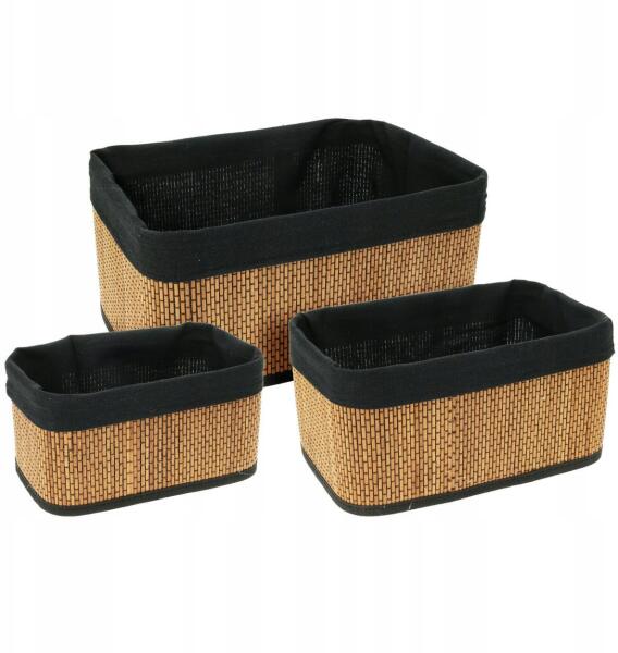 Koopman Bambusz kosár szett 3 db-os Fekete Szövet Barna Tároló (KR9000090)ALLEGRO