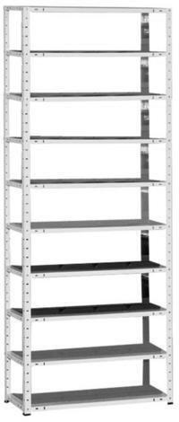 Lakkozott polcrendszer műanyag dobozoknak. A polcok 5 cm-ként állíthatók. A dobozok nem részei az állványnak, külön szükséges megvásárolni. Szállítás kötőelemekkel együtt. anyag: acéllemez méret ma x szé x mé: 200 x 90 x 35 cm doboz számhoz: 36 db polcok száma: 10 db teljes teherbírás: 750 kg polcok teherbírása: 75 kg súly: 25 kg szín: fehér RAL 9003