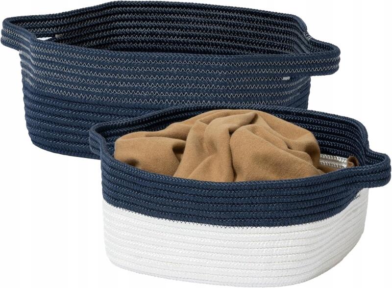 Tároló kosár zsinóros 33 x 15cm sötétkék-bézs 2db (X002022ROV)ALLEGRO